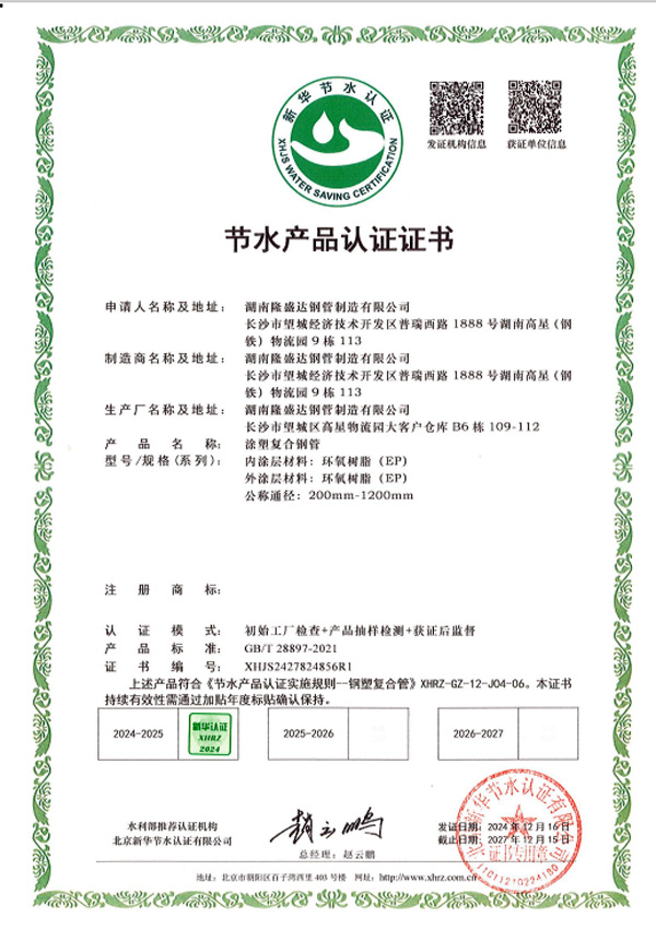 隆盛達(dá)牌給水涂塑復(fù)合鋼管管材&管件涉水批件