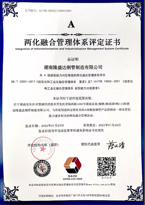 兩化融合評(píng)定證書